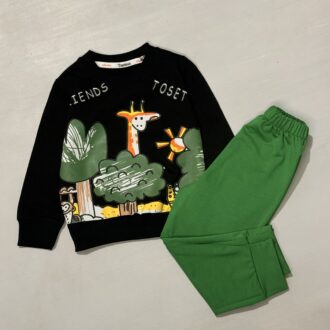ست بلوز شلوار زرافه و جنگل جنس ست بلوز شلوار زرافه و جنگل پنبه اسپان  می باشد حدودا مناسب8 ماه